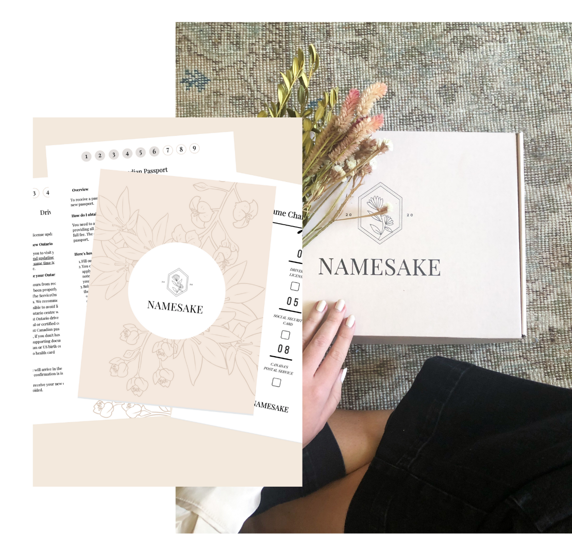 A complete name change kit delivered straight to your door. Our Namesake Box contains a personalized checklist, auto-filled documents, and step-by-step instructions to make changing your last name easy and error-free.